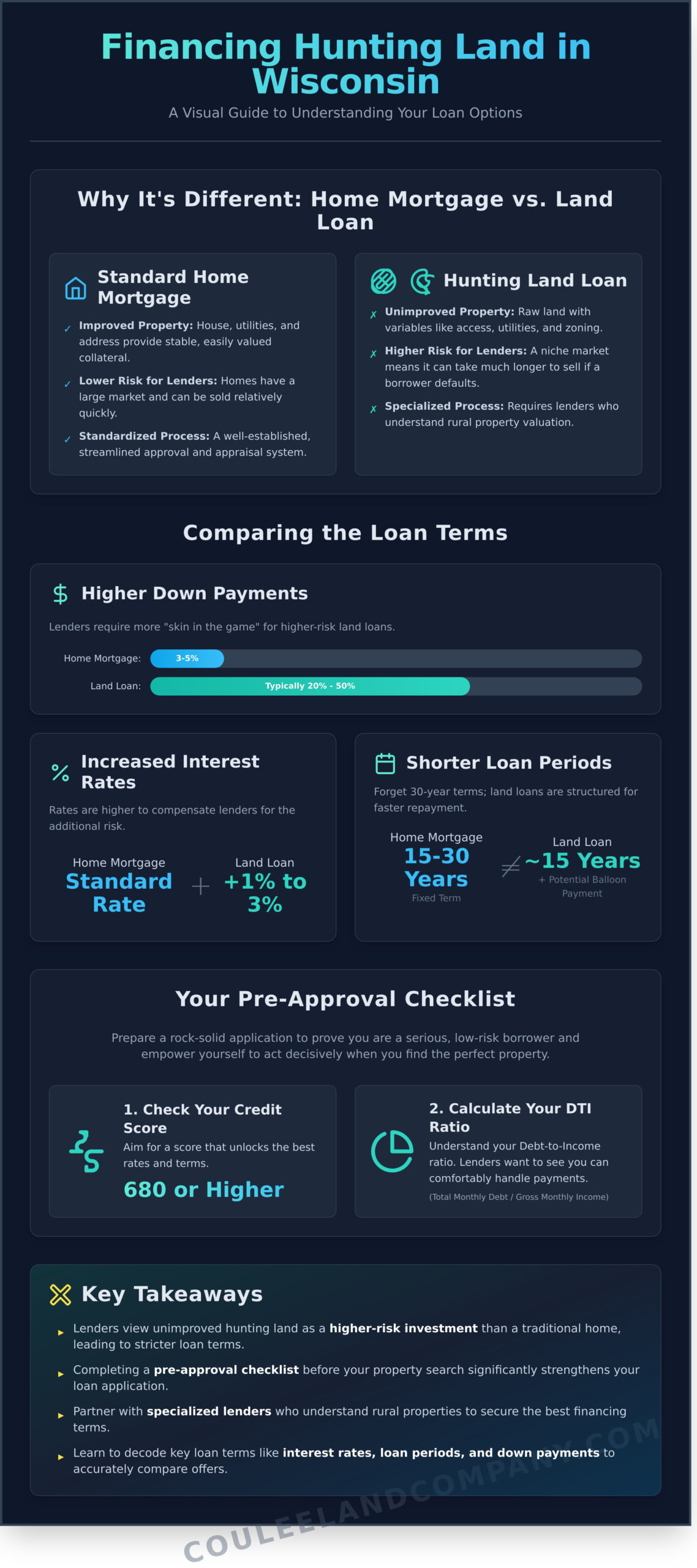 This higher-risk profile directly translates into more stringent loan terms compared to a conventional home mortgage. When you begin the process of financing hunting land in Wisconsin, you should expect significant differences in the structure of your loan.