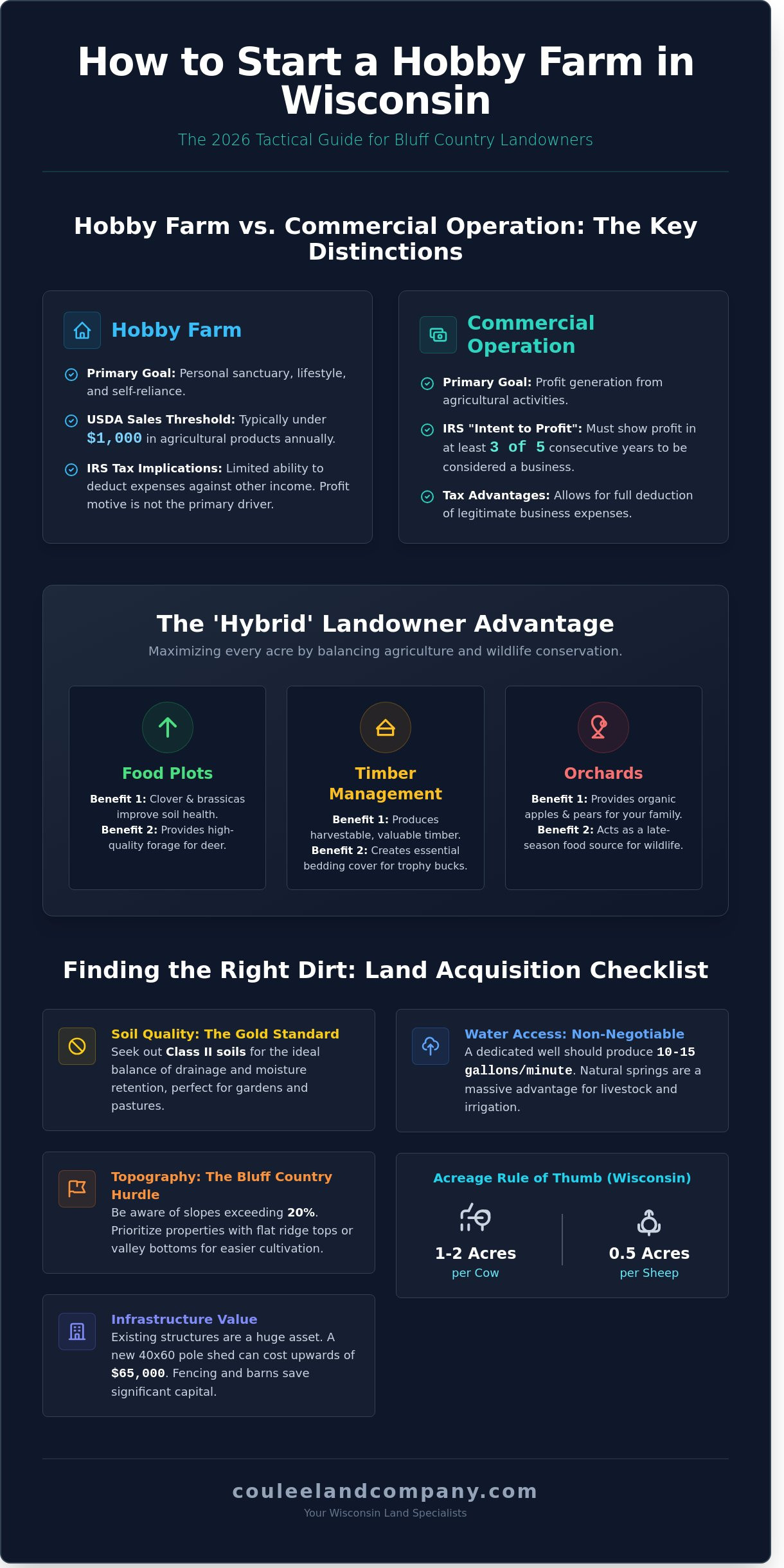 We promise to provide the exact roadmap needed to turn that vision into reality. This 2026 guide delivers the essential steps to launching a successful operation, from identifying high-yield acreage in Buffalo County to understanding the 2025 tax code updates regarding “hobby” versus “commercial” status. We will cover property acquisition strategies, specific livestock winterization requirements for sub-zero temperatures, and the agricultural incentives that make the Badger State a premier destination. You’ll finish this guide with the confidence to break ground on your first food plot or small livestock operation today.