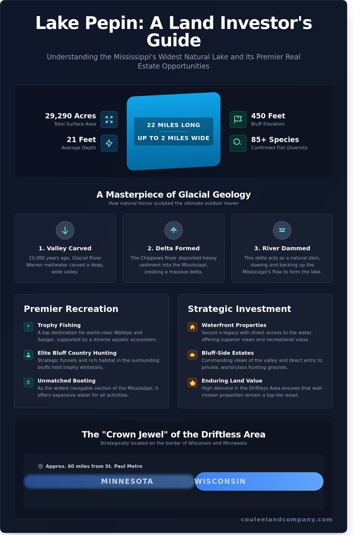 This guide provides the definitive breakdown of Lake Pepin, moving past surface level tourism to give you the hard data on private land boundaries, depth charts, and the specific glacial geology that makes this 29,000 acre expanse a premier investment. We’ll analyze the unique formation of the lake; pinpoint the highest producing hunting corridors; and evaluate the current real estate market for those ready to secure a legacy property in the heart of the Coulee Region. You’ll gain the tactical knowledge needed to master this complex landscape and identify the superior land opportunities that others frequently overlook.