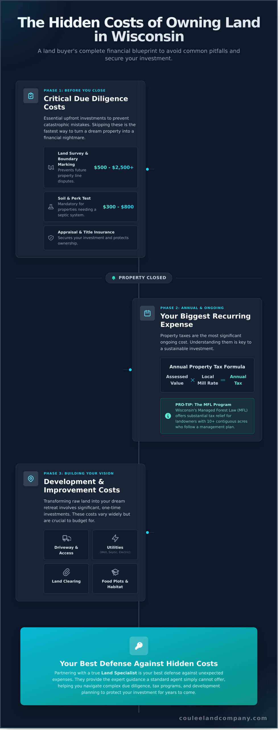 The dream of owning a piece of Wisconsin is powerful, but turning it into a successful reality requires a clear understanding of the full financial picture. From critical due diligence and development expenses to recurring property taxes and long-term land stewardship, the total investment goes far beyond the purchase price. Acknowledging these factors is the only way to truly master the hidden costs of owning land in wisconsin and protect your investment for generations to come.