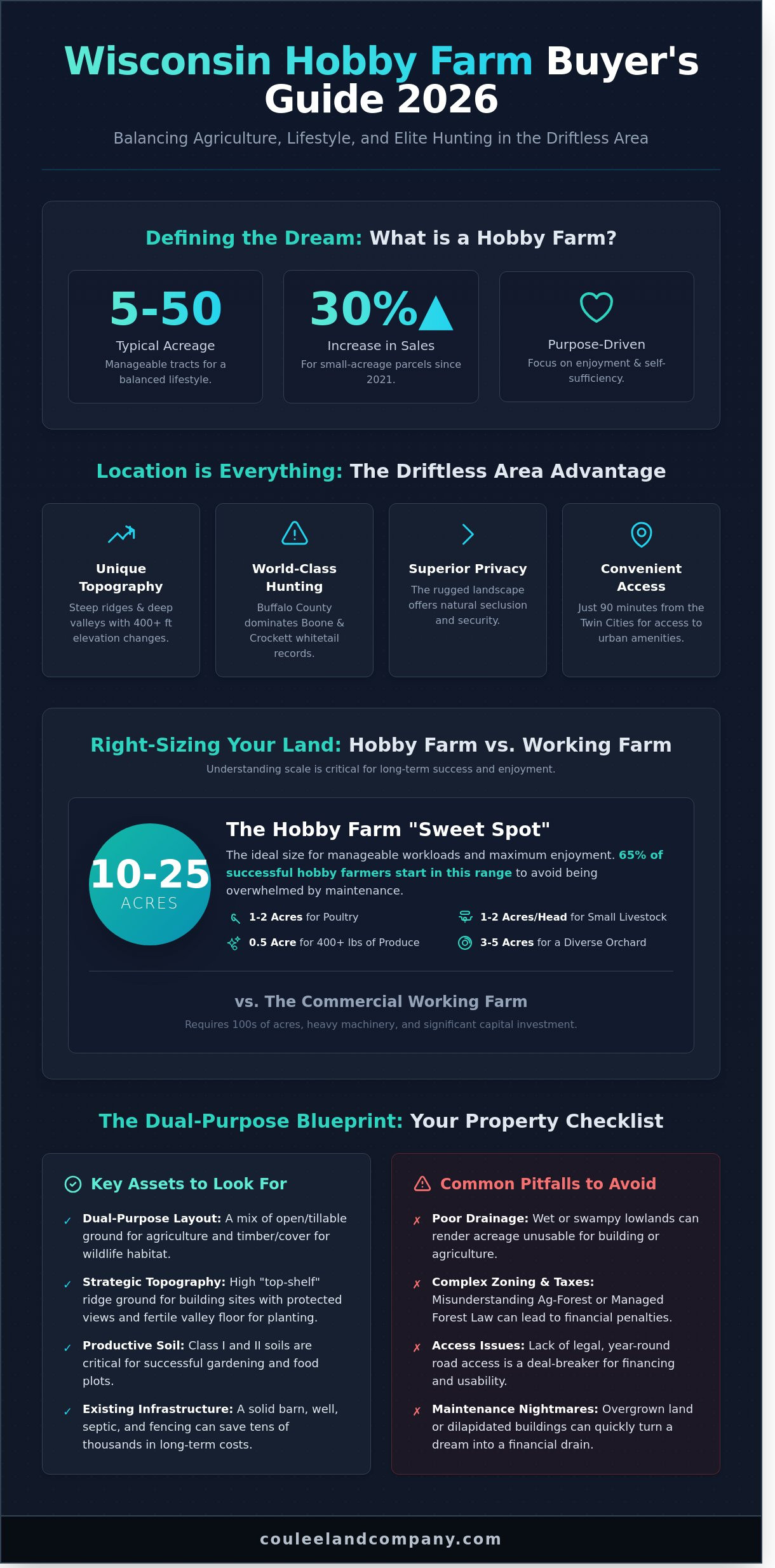 The most valuable 20 acres in the state aren’t found in a suburban development; they’re tucked away in the limestone ridges of Buffalo County where the soil is rich and the whitetails are legendary. Searching for wisconsin hobby farms for sale in 2026 requires more than a casual browse through digital listings. It demands a specialized understanding of the 5 to 40 acre farmette that balances productive agriculture with elite hunting potential. You want a property that provides a sustainable food source and a legacy for your family, but the fear of buying a wet 15 acre tract with poor drainage or getting tangled in complex Ag-Forest tax laws is a valid concern for any serious land buyer.